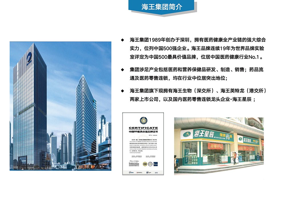海王集團旗下現(xiàn)擁有海王生物(深交所)、海王英特龍(港交所)兩家上市公司,以及國內醫(yī)藥零售連鎖龍頭企業(yè)-海王星辰﹔