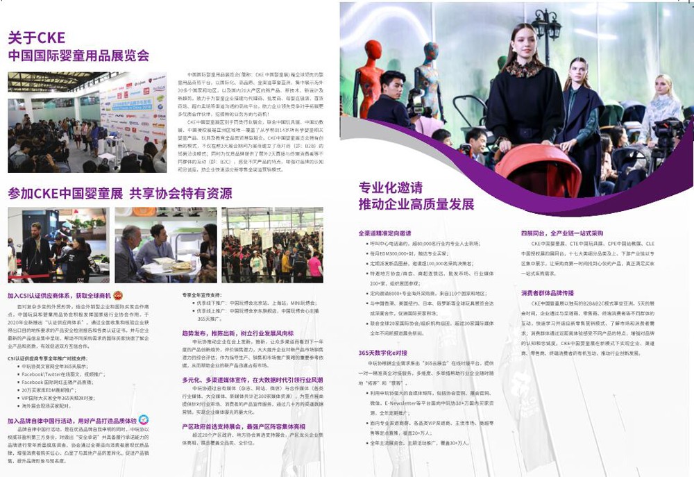 CKE中國嬰童展是全球領先的嬰童用品商貿平臺,以國際化、高品質、全渠道享譽亞洲,集中展示全球新產品、新技術、新設計及新趨勢,助力企業(yè)對接代理商、批發(fā)商、母嬰連鎖店、百貨商場、超市賣場等,助力企業(yè)領先競爭對手拓展更多優(yōu)質合作伙伴,挖掘新的業(yè)務方向與商機!