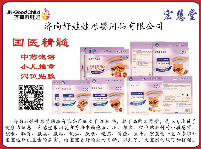 濟(jì)南好娃娃母嬰用品有限公司成立于2004年,旗下品牌宏慧堂,是以專注孩子健康理念,宏慧堂采用復(fù)方療法中藥泡浴、小兒推拿。穴位貼敷針對(duì)小兒感冒、咳嗽、脾胃、腹痛、腹瀉、便秘、厭食、退熱、黃疸、濕疹。宏慧堂一直以來(lái)以讓寶寶遠(yuǎn)離抗生素的危害,為寶寶更好的愛(ài)為目標(biāo),得到了廣大寶媽的認(rèn)可和信賴!