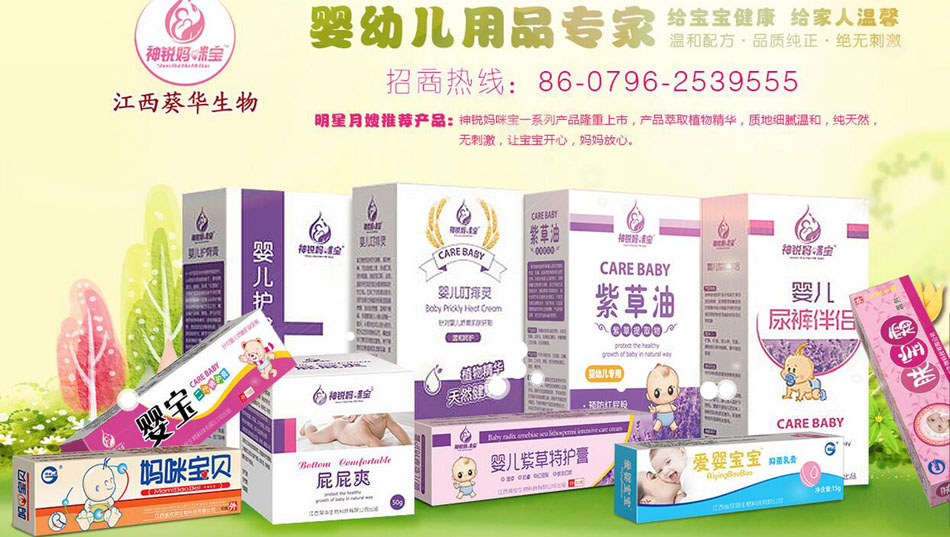 公司擁有膏劑、貼劑、外用噴劑等系列產(chǎn)品。最新推出神銳媽咪寶嬰童護(hù)膚產(chǎn)品:紫草油,嬰兒紫草特護(hù)膏,屁屁爽,嬰兒叮痱靈,嬰兒護(hù)臀膏等產(chǎn)品面向全國招商國.神銳媽咪寶嬰兒護(hù)膚產(chǎn)品精選純天然無污染野生藥材,采用先進(jìn)納米提取技術(shù),結(jié)合百年民間傳統(tǒng)工藝 精心研制而成。誠心的制藥人張開熱情的懷抱,熱忱歡迎海內(nèi)外有識(shí)之士加盟合作,為人類的健康事業(yè)攜手共創(chuàng)美好的明天!