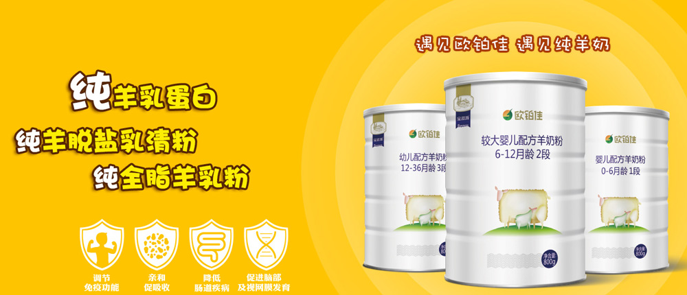 品牌名稱:歐鉑佳 主營(yíng)產(chǎn)品:歐鉑佳嬰幼兒配方羊奶粉 品牌特色:歐洲進(jìn)口奶源 100%純羊乳蛋白