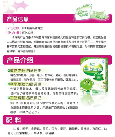 上海卡咪呢母嬰用品有限公司主營母嬰營養(yǎng)保健食品,產(chǎn)品原料來自有機(jī)農(nóng)業(yè)生產(chǎn)體系或野生天然產(chǎn)品,通過國家相關(guān)有機(jī)食品認(rèn)證機(jī)構(gòu)的嚴(yán)格檢測認(rèn)證,現(xiàn)面向全國空白市場區(qū)域誠招代理商加盟。