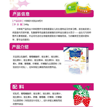 蛋白質(zhì)是人體重要營養(yǎng)素,也是多的營養(yǎng)素之一,是一切生命的物質(zhì)基礎(chǔ),可以保證機(jī)體的生長、發(fā)育、繁殖、遺傳及修補(bǔ)損傷的組織。上海卡咪呢母嬰用品有限公司是專業(yè)的母嬰營養(yǎng)品企業(yè),針對中國孕嬰童體質(zhì)推出了卡咪呢蛋白質(zhì)粉系列產(chǎn)品,現(xiàn)面向全國招商。