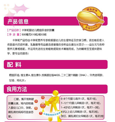 卡咪呢嬰幼兒鱈魚(yú)肝油軟膠囊