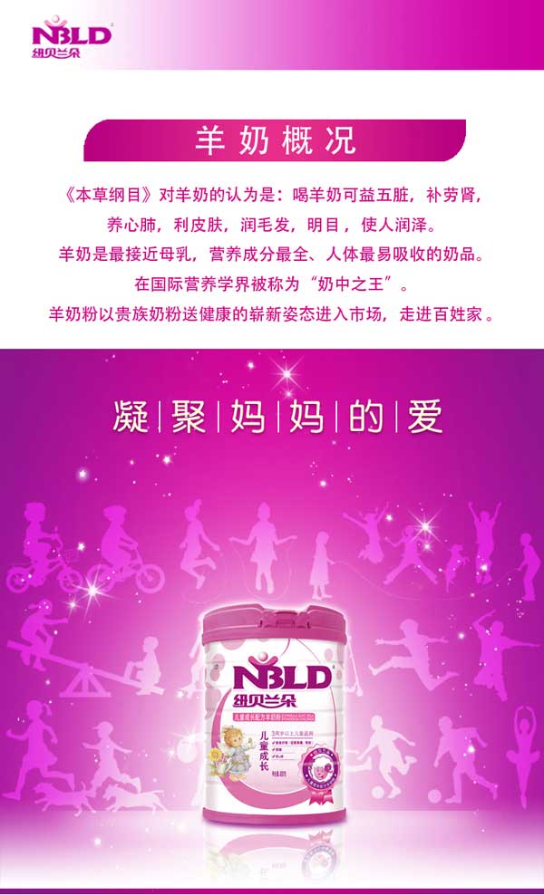 紐貝蘭朵羊奶粉由資深營養(yǎng)專家,專門針對(duì)中國人群研制而成的,奶源純正,配方更科學(xué),營養(yǎng)均衡,容易消化吸收,不易上火,有很強(qiáng)的市場(chǎng)競(jìng)爭(zhēng)力。