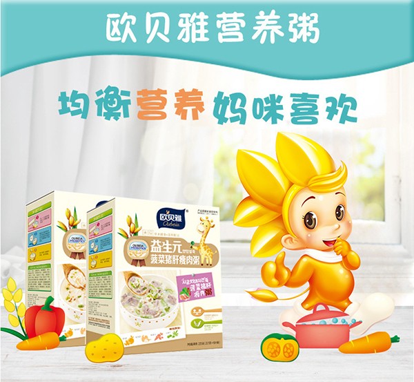 歐貝雅寶寶營養(yǎng)粥是廣東麥丹郎食品有限公司推出的嬰幼兒營養(yǎng)健康食品,將傳統(tǒng)的營養(yǎng)米粉和聞名全國的廣東粥品完美結(jié)合起來,不但保持了營養(yǎng)米粉原有的營養(yǎng)成分,而且口感更佳,沖水即食、方便快捷,廣受父母消費者的青睞。