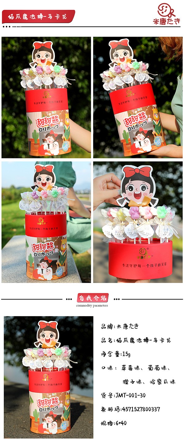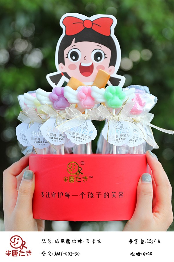 米唐たき品牌,主營棒棒糖,旗下有多個系列產(chǎn)品,如元氣花花棒棒糖、風(fēng)車王國波板糖、貓爪魔法棒棒糖、小魔仙魔法棒棒糖、海洋小分隊棒棒糖、動物派對棒棒糖、魔法棒棒糖等等。