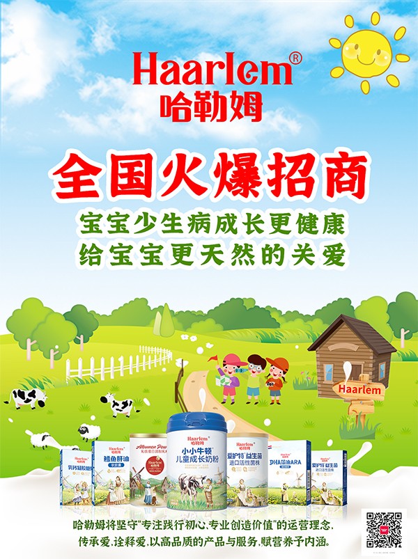 哈勒姆(上海)乳業(yè)有限公司以高品質守護好成長!哈勒姆愛護特益生菌強勢來襲,現面向全國火熱招商中,好營養(yǎng)好口碑,強力賦能終端,門店上貨可千萬不要錯過哦!