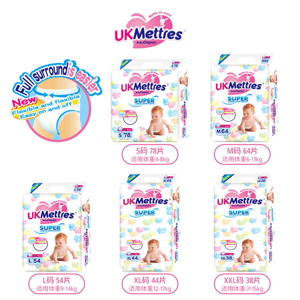 UKMETTRES紙尿褲采用柔軟面料,3D珍珠柔點導(dǎo)流面層,加速導(dǎo)流,不悶不熱,輕柔呵護小屁屁,超薄瞬吸芯體,高分子魔術(shù)吸水珠珠,3秒速吸并強效鎖住尿濕,媽媽不用擔(dān)心寶寶尿濕褲子,大小凹凸空氣墊,瞬吸干爽不側(cè)漏。