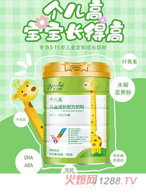 圣元個(gè)兒高兒童成長奶粉,長高鐵三角:“初乳堿性蛋白+水解蛋黃粉+高鈣”,均衡配比,助力骨骼生長!其中,鈣含量:1000mg!早晚各一杯,賦能成長!