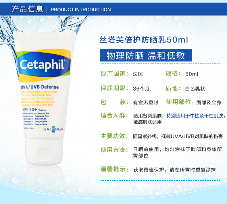 絲塔芙倍護(hù)防曬乳,全面抵御紫外線,防水防汗,溫和親膚,乳液質(zhì)地,水潤清透,不泛白不油膩,滋潤度特別好,成分安全,不容易刺激皮膚,過敏的可能性也比較小,特別適合嬰幼兒使用。SPF30+,PA+++,防曬防黑,無論是出游還是日常使用都特別適合,防水效果特別好,可以減少補涂的時間,能夠提供能長久的防曬時間,幫助滋潤修護(hù)受損肌膚,讓寶寶臉蛋細(xì)膩有光澤,拒絕曬后不適,親膚易水洗,讓寶寶安然度夏。
