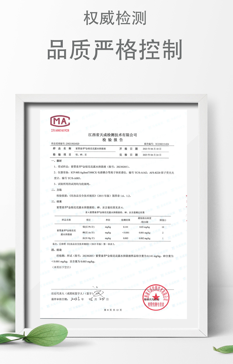 產(chǎn)品名稱:紫嬰童草 @金銀花花露水抑菌液