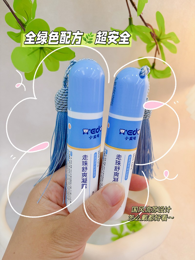 小奕噠走珠舒爽凝露,蘊含多種草本提取物,產(chǎn)品性質(zhì)溫和,其散發(fā)的獨特植物芳香可形成一種保護屏障。在野外,室內(nèi)都能有效呵護寶寶肌膚。全綠配方,溫和安全,產(chǎn)品能緩解外界環(huán)境因素對皮膚造成的不適,清涼舒爽,適合夏季全家使用。國風流蘇設(shè)計,小小一支,攜帶方便,隨時隨地呵護肌膚。