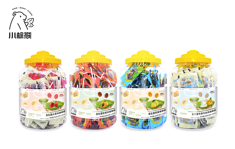 小棕熊益生菌棒棒糖系列,共有四種口味,梨膏味、芒果牛奶味、枇杷味、水果味。甄選食材,安心美味,特別添加益生菌,呵護(hù)肚肚健康。其中,梨膏味、枇杷味、水果味,均不添加雞蛋和牛奶,無麩質(zhì)產(chǎn)品,0蛋白0脂肪0鈉,梨膏≥3%;芒果牛奶味,添加無鹽黃油、煉乳,0反式脂肪酸?羁蠲牢,吃的更放心。