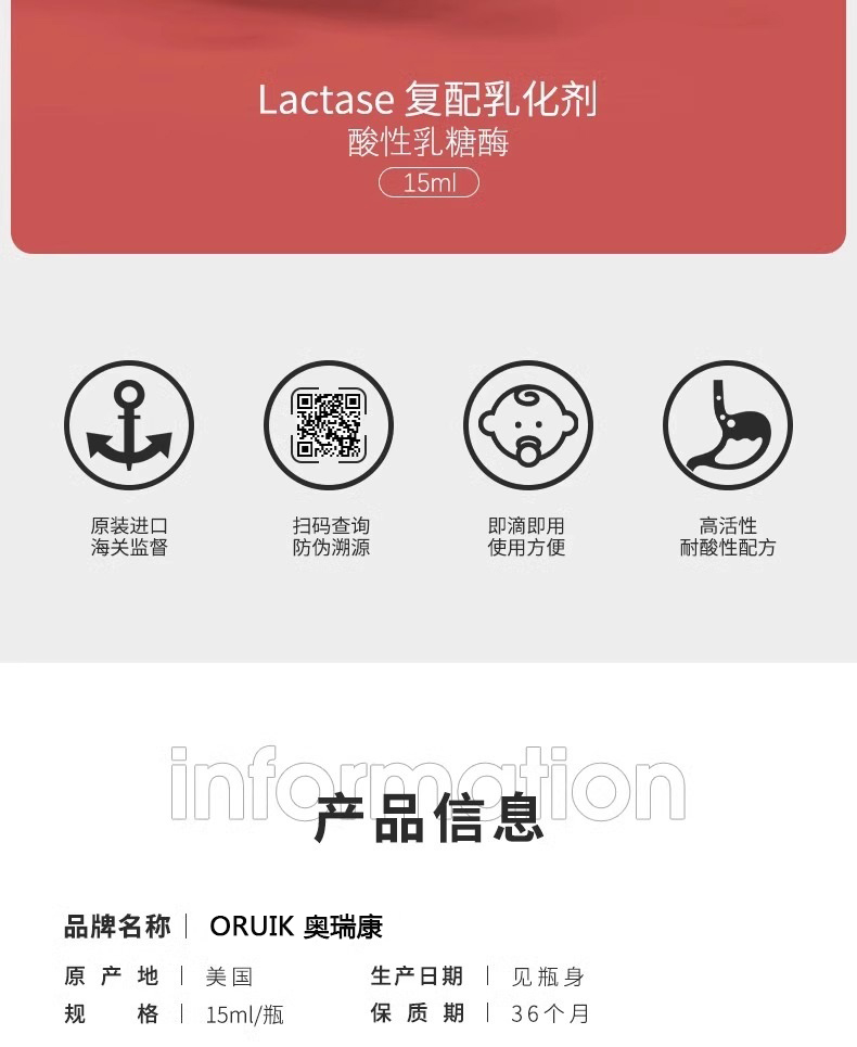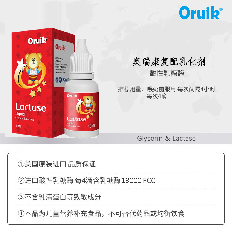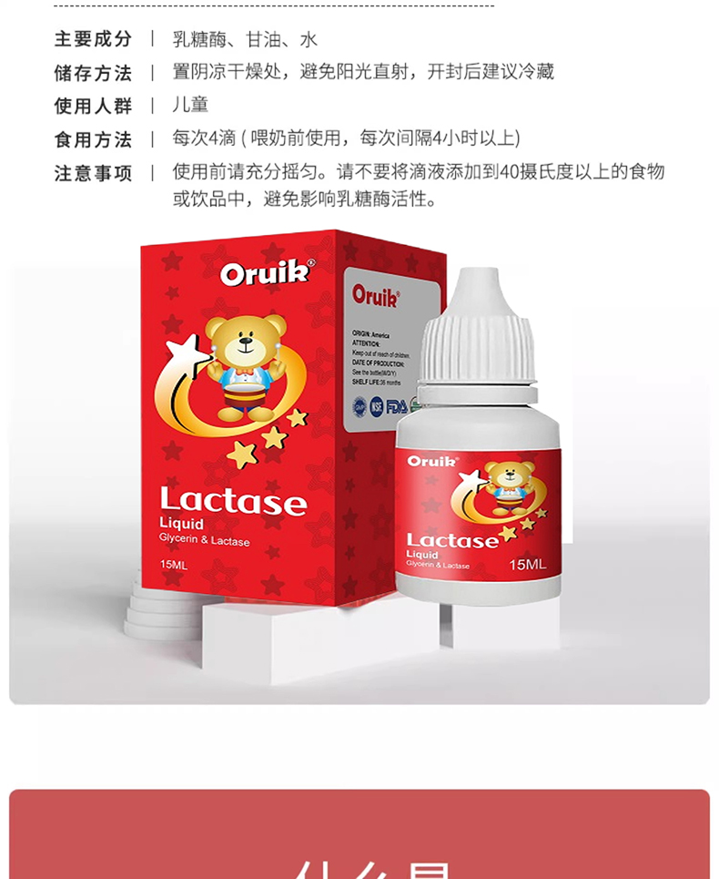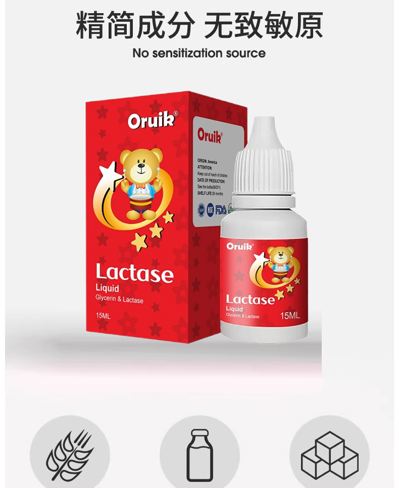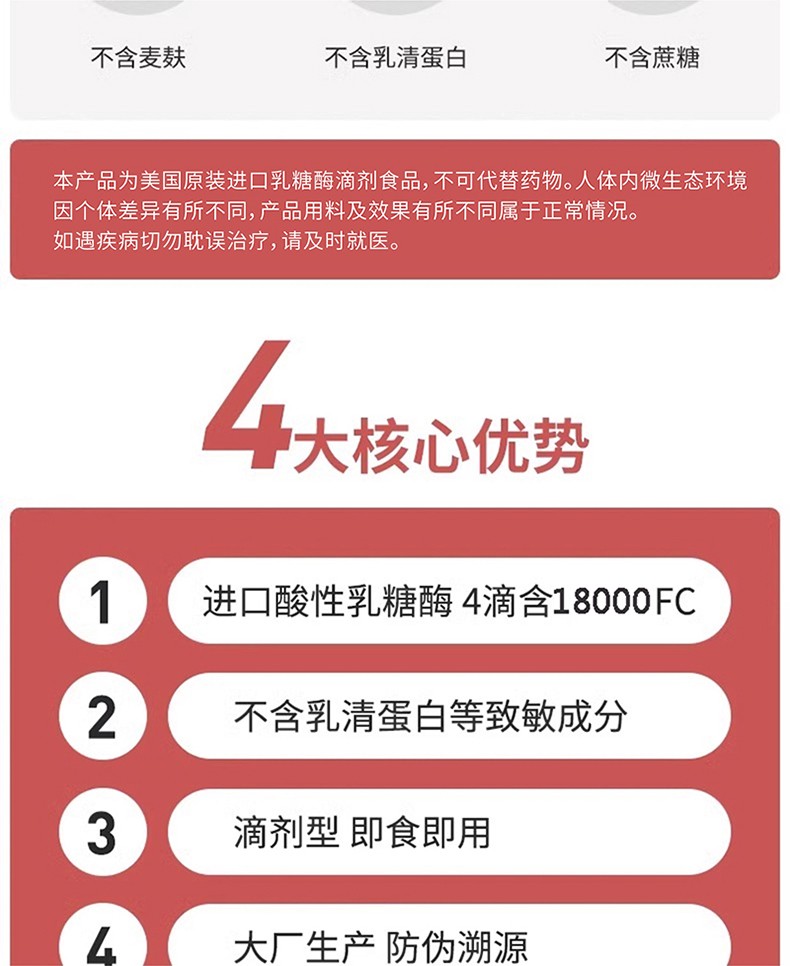 ②進(jìn)口酸性乳糖酶每4滴含乳糖酶18000FCC