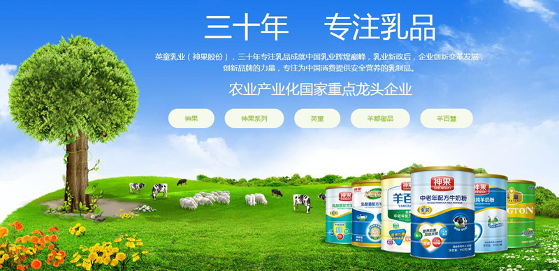陜西神果股份有限公司始建于1987年,位于中國唯一的國家級農(nóng)業(yè)高新區(qū)--楊凌農(nóng)業(yè)高新技術(shù)產(chǎn)業(yè)示范區(qū)內(nèi),是我國西北地區(qū)生產(chǎn)規(guī)模最大、技術(shù)設(shè)備最先進(jìn)的乳制品生產(chǎn)加工企業(yè),1997年完成了股份制改造,是陜西省首家股份制農(nóng)業(yè)產(chǎn)業(yè)化龍頭企業(yè)。是集乳制品、飲料加工生產(chǎn)、運(yùn)輸、冷藏、養(yǎng)殖、廣告、金融、房地產(chǎn)開發(fā)于一體的大型股份制食品工業(yè)企業(yè)。是目前我國西北地區(qū)生產(chǎn)規(guī)模較大,技術(shù)設(shè)備最先進(jìn)的乳制品生產(chǎn)加工企業(yè)之一。2014年根據(jù)國家乳業(yè)新政要求,神果完成乳品工廠的升級改造建設(shè)完全符合國家標(biāo)準(zhǔn)。同時,神果股份進(jìn)行資產(chǎn)和股份重組,完成新一輪投資,神果股份在乳制品行業(yè)將會迎來更加強(qiáng)勁的發(fā)展機(jī)遇。神果股份成立27年來取得一系列的輝煌成就和榮譽(yù),2014年9月神果股份再次被農(nóng)業(yè)部、國家發(fā)展和改革委員會、財(cái)政部、商務(wù)部、中國人民銀行、國家稅務(wù)總局、中國證券監(jiān)督管理委員會、中華全國供銷合作總社聯(lián)合審定為農(nóng)業(yè)產(chǎn)業(yè)化國家重點(diǎn)龍頭企業(yè)。神果,羊都御品,英童,羊百慧品牌的乳酸菌及成人奶粉新配方新包裝隆重上市。