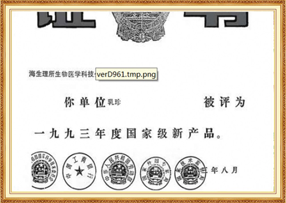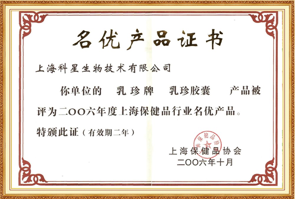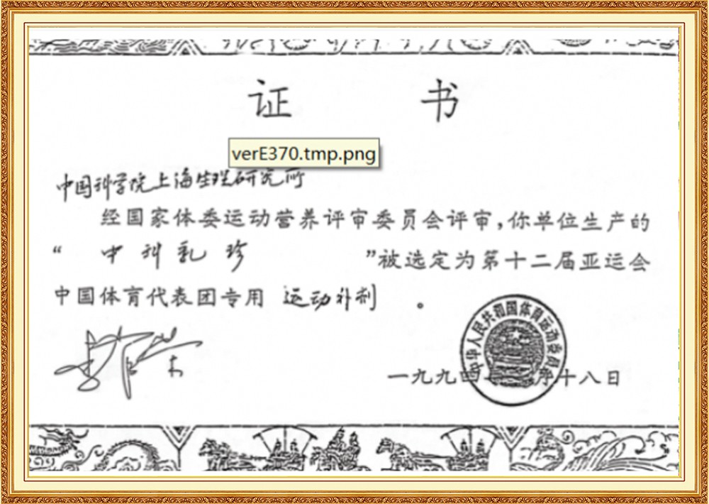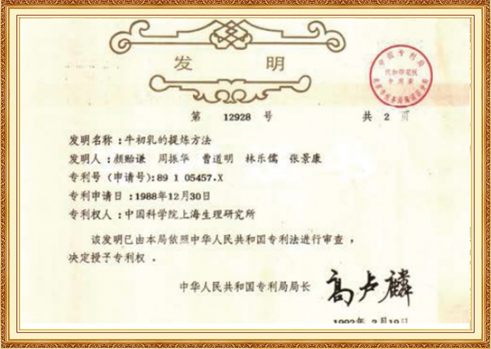 1989年,公司一款具有獨立知識產(chǎn)權(quán)的產(chǎn)品“乳珍”問世,該產(chǎn)品凝聚了中科院上海生理研究所楊雄里院士等多位專家的智慧結(jié)晶,是早獲得國家發(fā)明專利的牛初乳制品!叭檎洹钡恼Q生,開啟了國內(nèi)牛初乳研究應(yīng)用的先河,經(jīng)鑒定委員會專家認定,該產(chǎn)品為國內(nèi)首創(chuàng),并獲得"國家級新產(chǎn)品"殊榮,被指定為亞運會專用補劑。