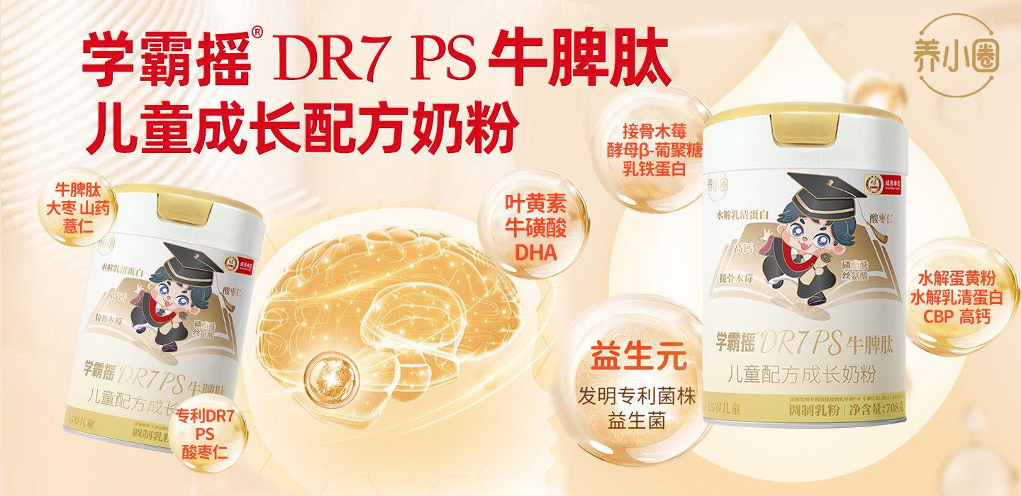 根據(jù)孩子的生長發(fā)育規(guī)律,3~14歲是人體發(fā)育的關(guān)鍵階段,孩子這個時候喜歡思考,喜歡獨立做事。在這個階段,需要保證孩子的智力體力得到全面發(fā)展,必須為孩子補充足夠的營養(yǎng)。那么,如何補充足夠的營養(yǎng)呢?除了日常正常的飲食攝入之外,還可以選擇一款專業(yè)且營養(yǎng)的兒童奶粉,推薦養(yǎng)小圈學(xué)霸搖DR7 PS牛脾肽兒童配方成長奶粉。