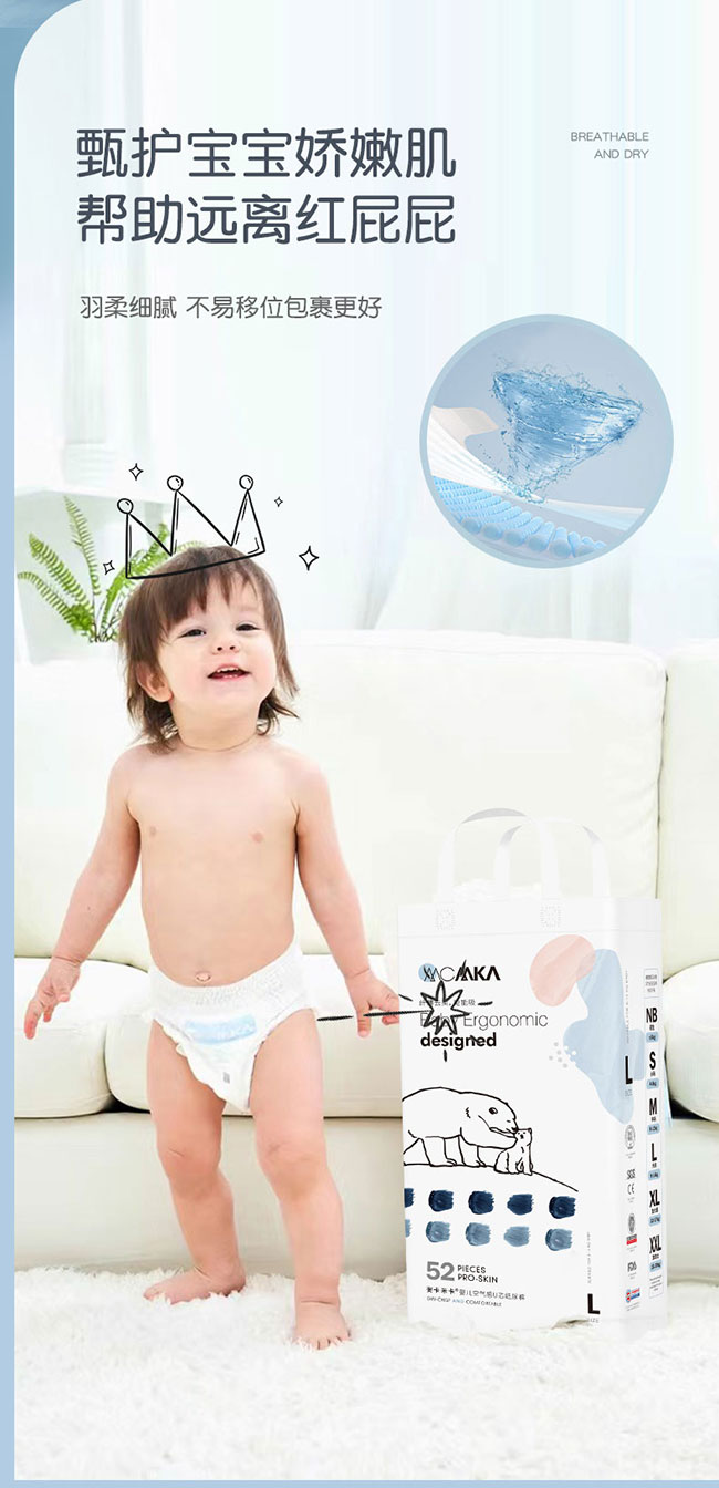 在親膚干爽層面,麥卡米卡更是下足了功夫。采用臺灣進口面層,搭配獨特的梅花打孔設(shè)計與先進單層水刺布技術(shù),觸感細膩柔軟到讓人驚嘆,仿佛把云朵貼在寶寶屁屁上;同時,打孔結(jié)構(gòu)能加速尿液滲透,減少面層與肌膚的接觸潮濕感,讓小屁屁時刻保持干爽。而核心的日本進口芯體,更是解決了家長最擔心的起坨斷層問題,配合自主獨特吸水系統(tǒng),能快速鎖住海量尿液,哪怕寶寶一整晚不換,也能保持芯體平整,杜絕漏尿?qū)擂巍?/span>