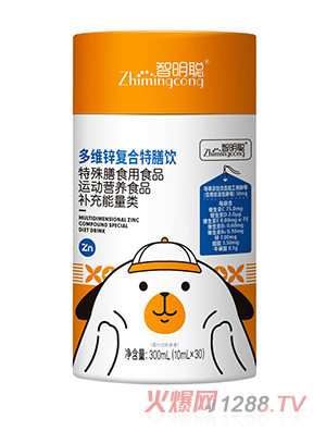 智明聰多維鋅復(fù)合特膳飲,屬于特殊膳食食用食品、運(yùn)動營養(yǎng)食品補(bǔ)充能量類。其每袋添加了包括熱穩(wěn)工酵母(含酵母鋅)等多種營養(yǎng)成分,還含有維生素 A、維生素 D、維生素 E、維生素 B₁、維生素 B₂、煙酸、;撬岬葼I養(yǎng)物質(zhì),科學(xué)搭配,為消費(fèi)者提供豐富營養(yǎng)選擇。