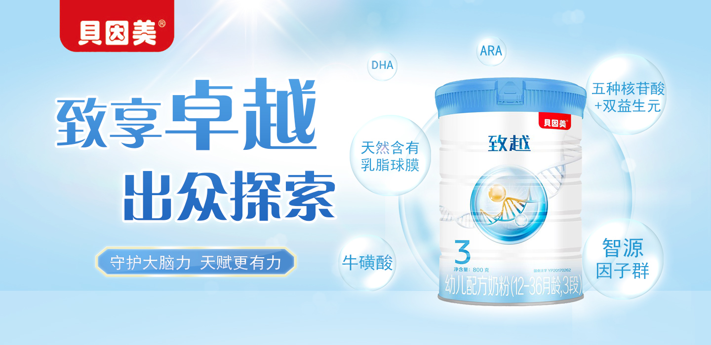 致越是貝因美旗下一款嬰幼兒配方奶粉,貝因美成立于1992年,主公司以“親子顧問,育兒專家”為品牌定位,主要從事嬰幼兒食品的研發(fā)、生產和銷售等業(yè)務,旗下奶粉系列擁有菁愛、童享、愛加、綠愛、超冠寶和天才寶貝等產品,其中致越主要在母嬰門店等渠道銷售。