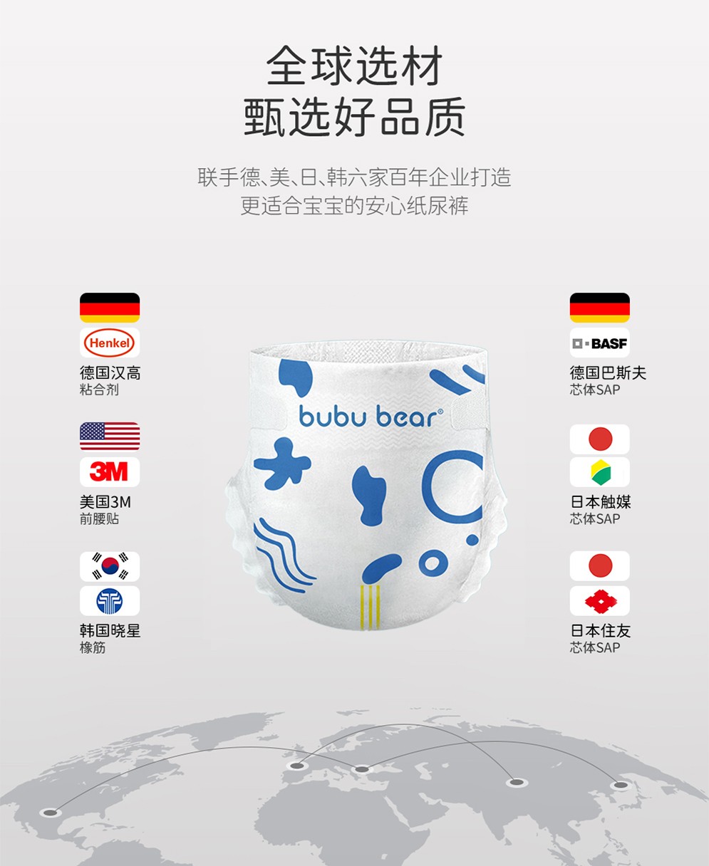 不不熊以雄厚的實力,保證為每一位新手爸媽提供高品質(zhì)、高顏值、高性價比的母嬰用品,全球選材,甄選品質(zhì),只為研發(fā)真正適合中國新生家庭的優(yōu)質(zhì)母嬰產(chǎn)品。