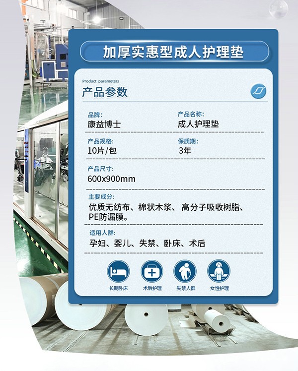 康益博士成人紙尿褲,產(chǎn)品具有大吸量、呵護(hù)肌膚、除臭去味等特點(diǎn),同時還兼具更好的親膚性、防漏性與透氣性,保證穿起來更加舒適,穿著不會覺得悶,不懼側(cè)漏,避免尷尬。