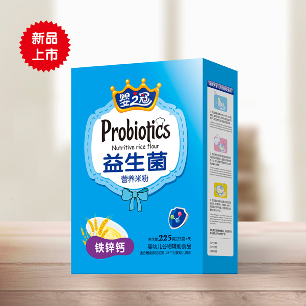 嬰之冠益生菌營養(yǎng)米粉 鐵鋅鈣 盒裝產(chǎn)品展示