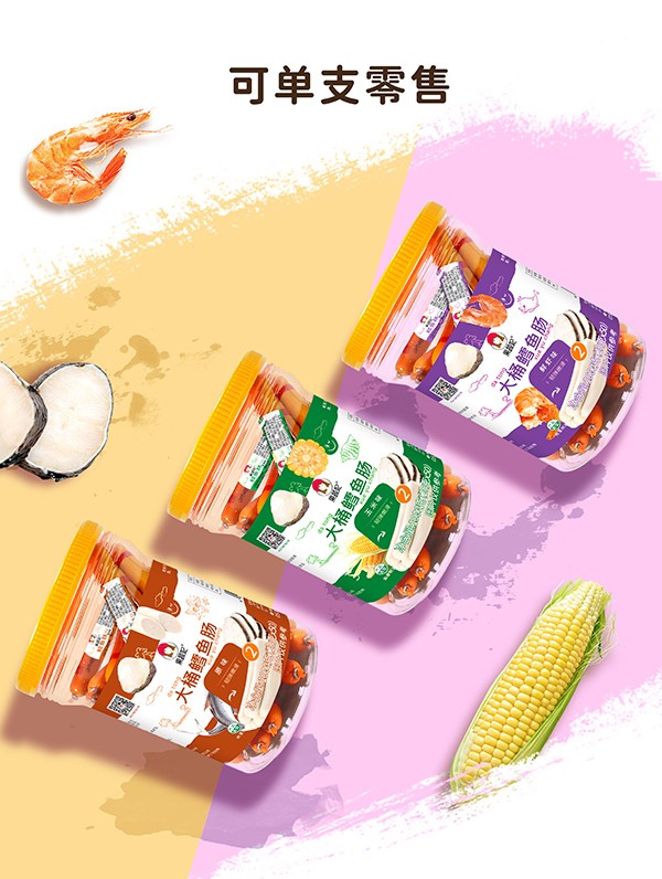 果蔬妃【大桶鱈魚(yú)腸】營(yíng)養(yǎng)豐富,韌彈嫩滑,不添加人工香精、色素和防腐劑,在堅(jiān)持安全配方的基礎(chǔ)上,單支獨(dú)立條碼,真正可以單支銷(xiāo)售!一桶50支,20克每支,有原味、玉米和鮮蝦3種口味可選!