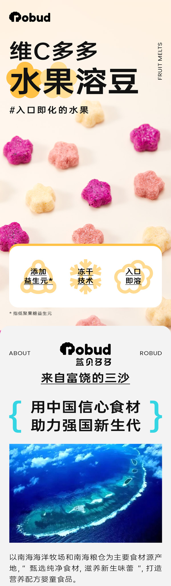 藍(lán)貝多多維C多多水果溶豆,甄選多種新鮮水果,采用凍干技術(shù)制作,保證營養(yǎng)不流失,新鮮果肉破壁技術(shù),入口易溶,本真水果味,滿滿維生素,添加益生元,促進(jìn)營養(yǎng)好吸收,星星造型,可愛萌趣。