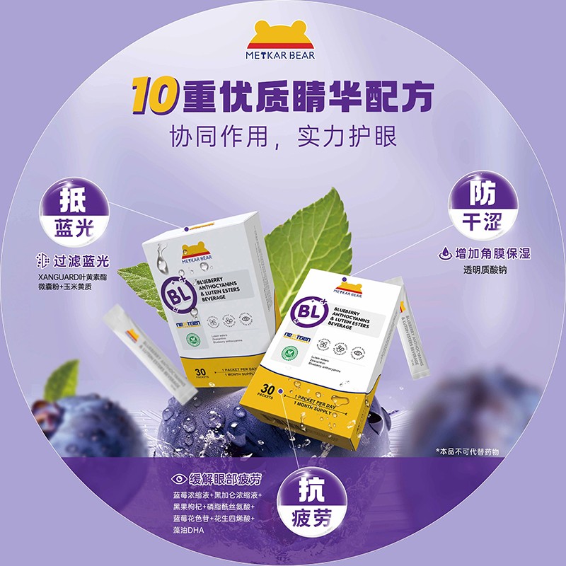 不僅如此,MEYKARBEAR美卡熊藍(lán)莓花色苷葉黃素酯飲品甄選了10大原料復(fù)合配方,多重天然營(yíng)養(yǎng)呵護(hù),酸甜口感,喚醒味蕾,嘗得出的“潤(rùn)”、“甜”、“鮮”。專治嘴饞、嘴刁的寶寶,全方位滋養(yǎng)寶寶的嬌嫩雙眼,為孩子的成長(zhǎng)之路點(diǎn)亮一盞明亮的燈塔。
