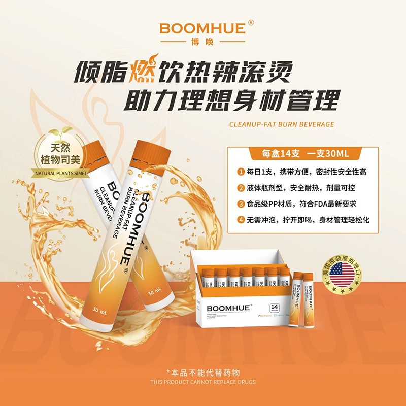 BOOMHUE博喚傾脂燃飲采用獨(dú)特的液體瓶劑型設(shè)計(jì),告別傳統(tǒng)產(chǎn)品的瓶瓶罐罐,攜帶更方便。同時(shí)消費(fèi)者無(wú)需害怕巨大的藥丸吞服體驗(yàn),只需輕輕擰開瓶蓋,即可直接飲用,無(wú)需沖泡或攪拌,口感酸甜好喝,將身材管理日;、零食化,為身材管理帶來(lái)更輕松的選擇。