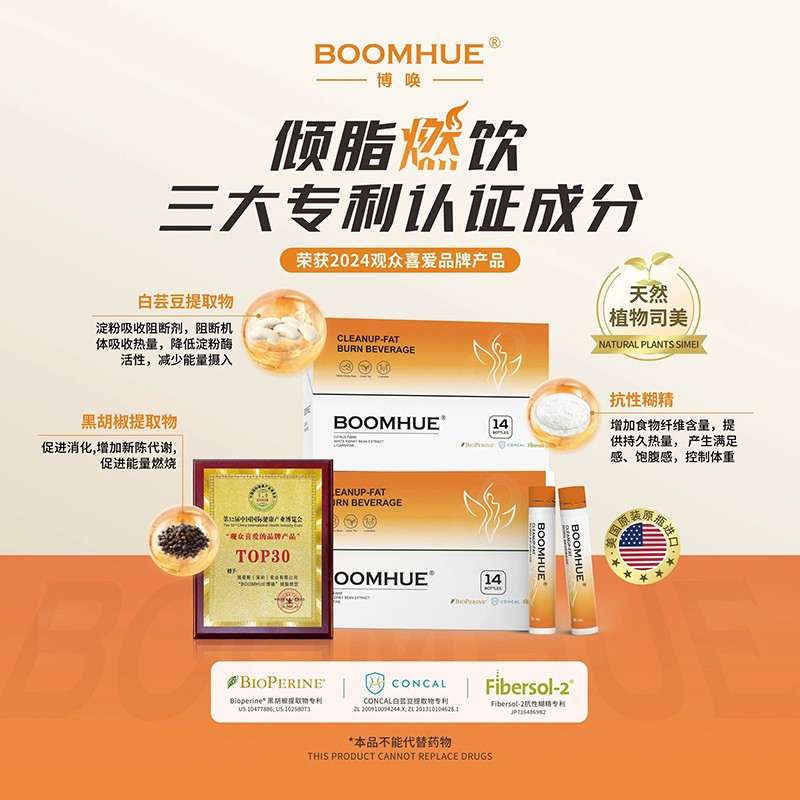 在追求健康與美麗的道路上,瑞普斯同樣不遺余力。BOOMHUE博喚傾脂燃飲,憑借卓越的復(fù)合配方與創(chuàng)新營(yíng)養(yǎng)補(bǔ)給方式,榮獲“最受觀眾喜愛品牌產(chǎn)品獎(jiǎng)”。傾脂燃飲甄選15種優(yōu)質(zhì)原料成分,堪稱“天然植物司美”,其中白蕓豆提取物、黑胡椒提取物、抗性糊精三大成分擁有國(guó)內(nèi)外專利認(rèn)證。通過(guò)阻、抑、燃、消、排5重管控,助力理想身材管理。