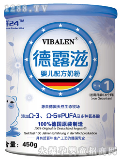 德露滋為德國制造的奶粉,在德國同步銷售的商標(biāo)為VIBALEN,盒裝。在亞洲華語地區(qū)為VIBALEN德露滋,聽裝。